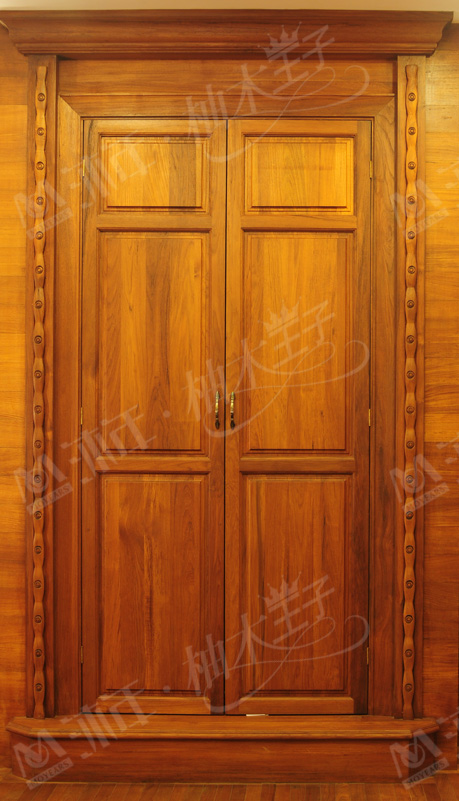 柚木原木門定制系列均采用緬甸原始森林百年以上的老柚木樹為原材料,全部存放3-5年以上做自然養生過程,選料考究全部參照國際標準執行,紋路清晰即使半成品也再度經過標準氧化及干燥含水率處理,顏色金黃且不易變形,因此沐年定制的原木門簡約不失大氣,含蓄而奢華;